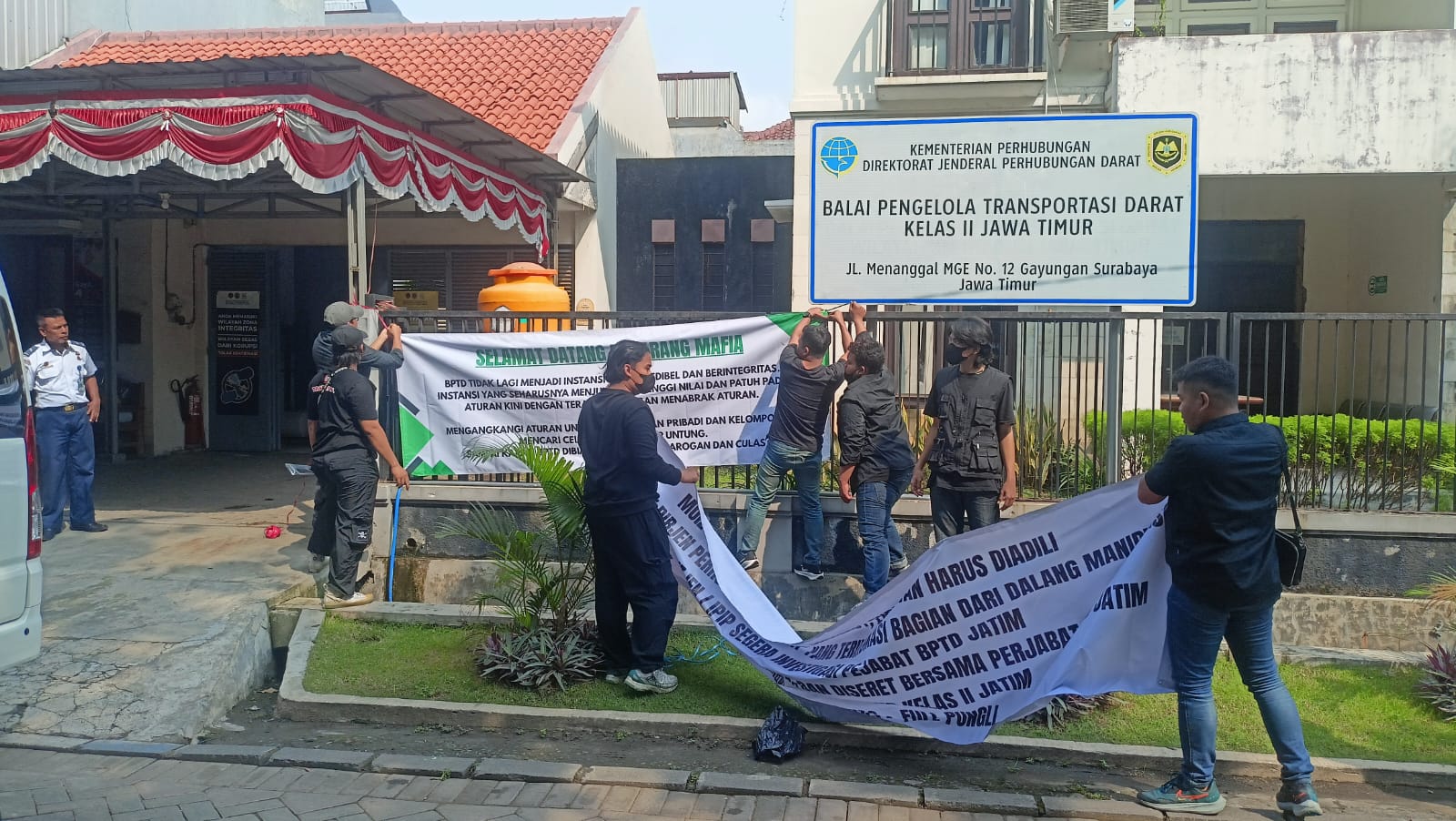 Aksi ini bukanlah unjuk rasa dengan orasi lantang, melainkan sebuah aksi bisu yang justru mampu menyampaikan pesan mendalam, terkait dugaan praktik korupsi di tubuh BPTD Jatim. Dalam aksinya, para anggota KCB Jatim membawa serta empat spanduk yang menjadi representasi dari aspirasi mereka. Spanduk-spanduk tersebut kemudian dipasang dengan rapi di pagar kantor BPTD Jatim, menjadi pemandangan yang tak biasa bagi para pengendara dan masyarakat yang melintas di kawasan tersebut.